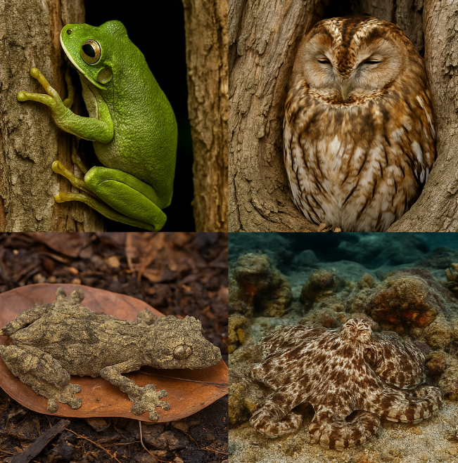 A evolução desenvolveu diferentes técnicas de camuflagem em diversas espécies.